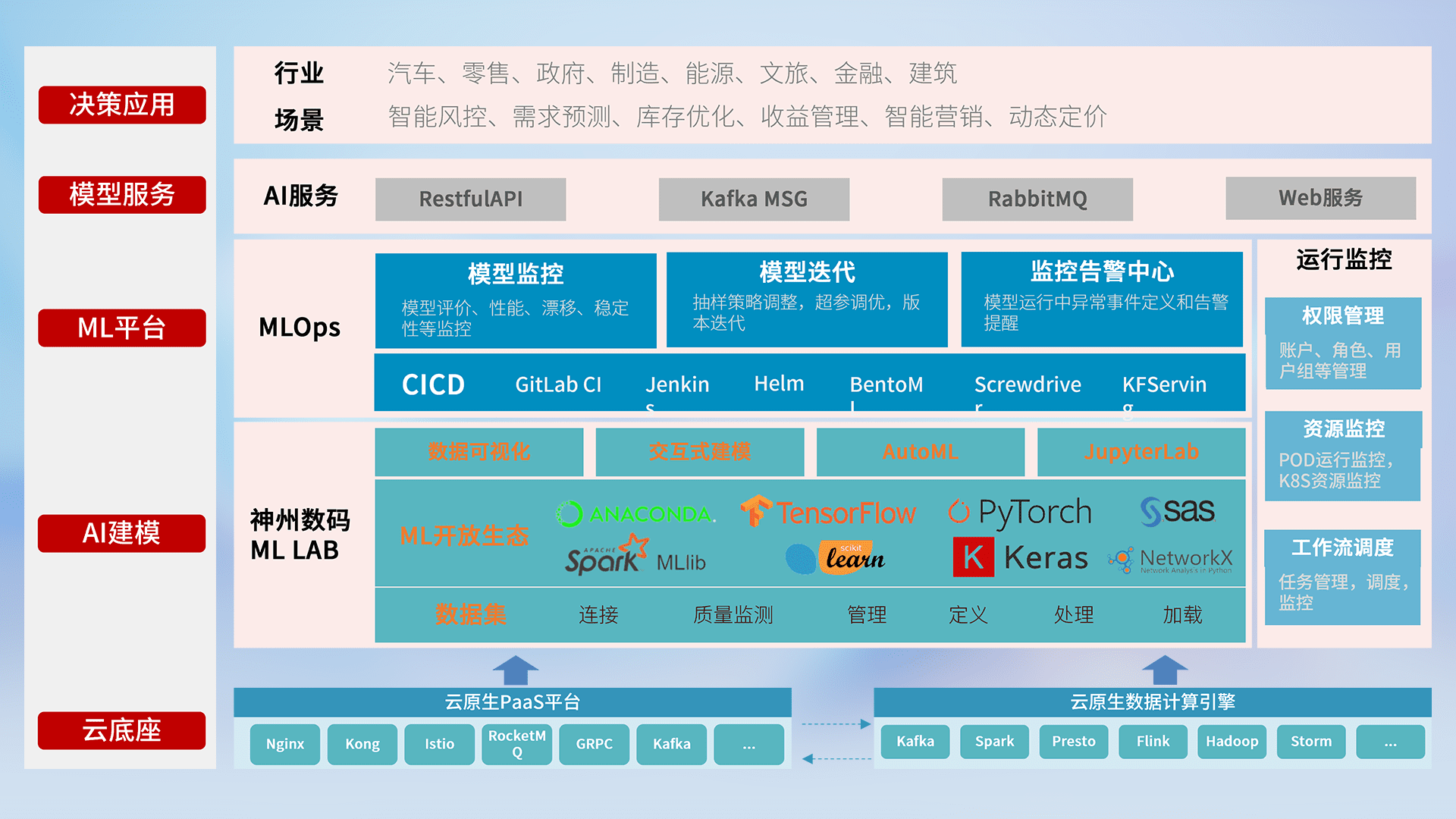 数据+模型双引擎驱动,,,面向智能服务场景,,,,快速灵活利用AI技术,,,支持业务决策,,助力企业智能化转型破局。。。。